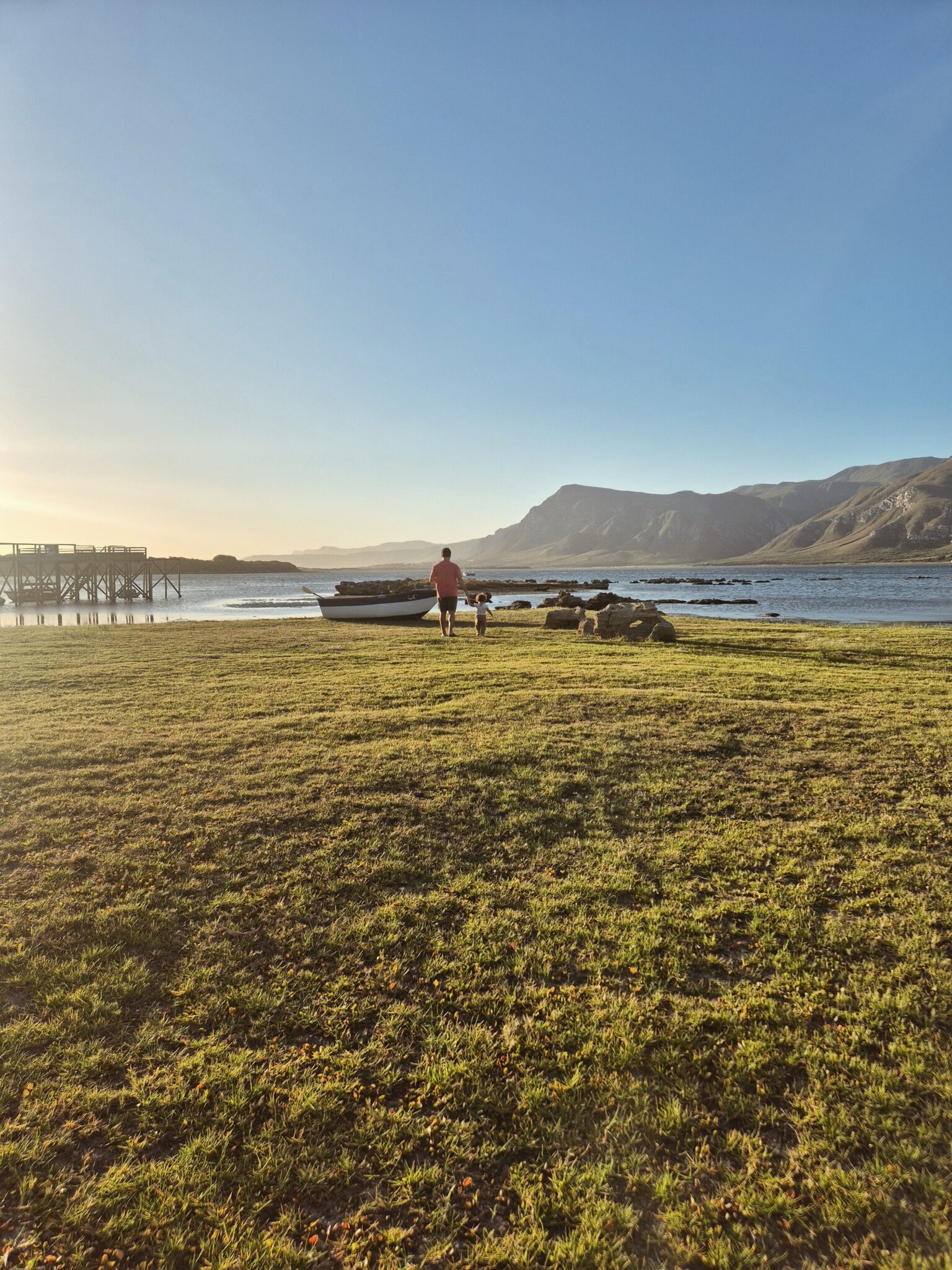 Our favourite part was probably the sundowners. Late afternoon, drinks in hand. The lagoon and mountains as a backdrop, the sky turning soft shades of pink above us. The kids playing together — no screens, no distractions. Just laughter echoing across the grass. What a magical memory.